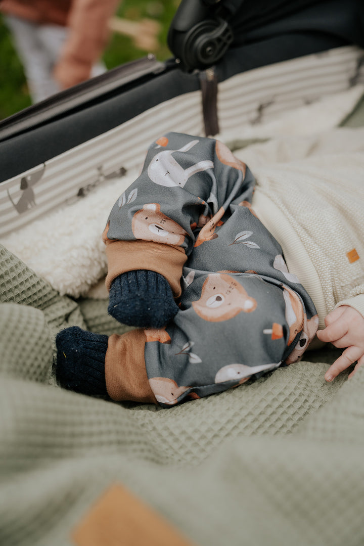 Mitwachshose für Babys mit niedlichem Waldtier-Motiv – aus Jersey (95 % Baumwolle, 5 % Elasthan)