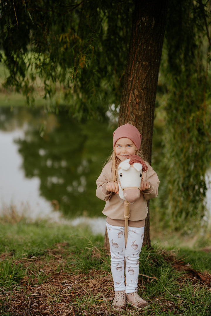 Handmade Kinderleggings aus Rippjersey mit süßem Eicheldruck