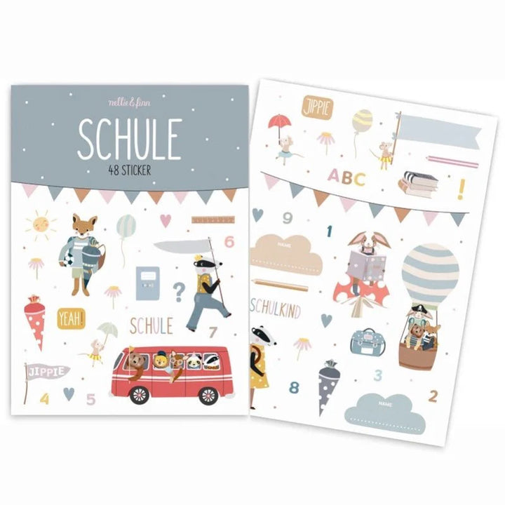 48 Sticker für Schulkinder. Passend als Geschenk für die Schultüte, den Schulanfang oder die gesamte Schulzeit. Mit Tiermotiven, einer Wimpelkette, Namensschildern und vielen andern Motiven.