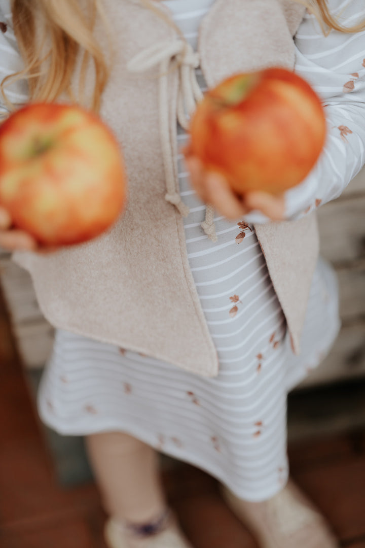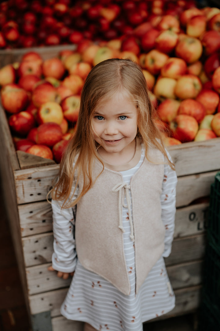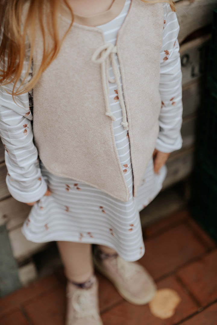 Die Weste aus Biofleece und musselin ist separat erhältlich.
